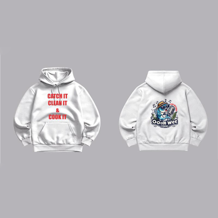 These Oooh Wee custom tees and hoodies blend comfort with style, perfect for any adventure. Crafted from soft, breathable fabric, they keep you comfy while you reel in your next big catch or just chill. Available in bold colors like white, black, royal blue, and fiery red, these shirts and hoodies make sure you stand out while representing the Oooh Wee lifestyle.